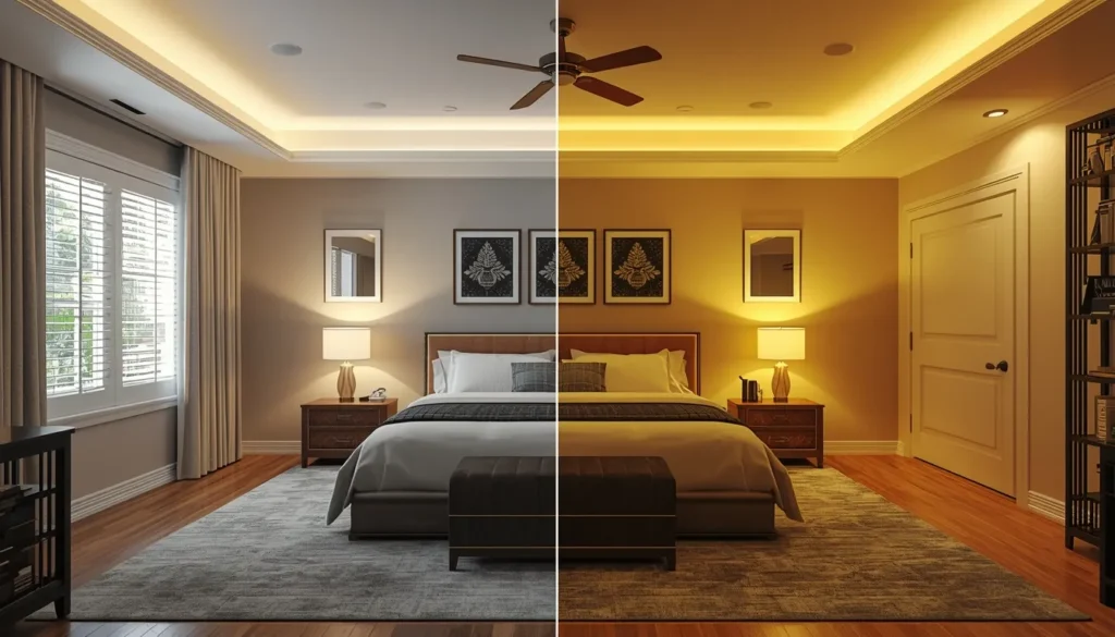 یکی دیگه از اشتباها که خیلی بین مردم رایجه تنظیم نور دما برای محیطه که نمیتونن بر اساس فضا نور رو تنظیم بکنن.