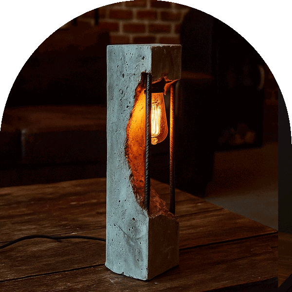 این چراغ دکوراتیو خاص ترکیبی چشم نواز از بتن و میلگرد است که با طراحی دست ساز خود فضایی گرم و متفاوت در محیط ایجاد میکند.